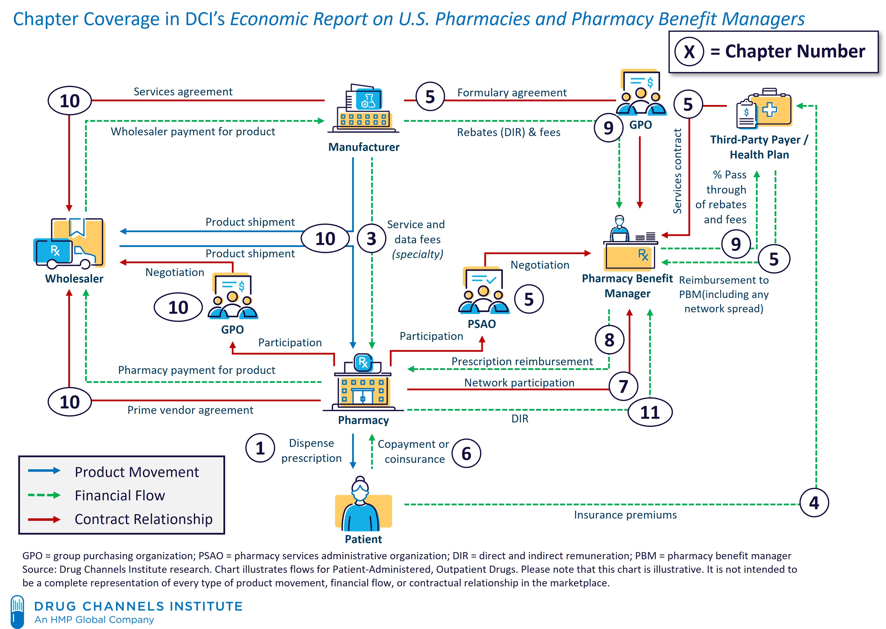 The report was researched and written by Adam J. Fein, Ph.D., one of the world’s leading experts on the industry and author of the influential Drug Channels website. It synthesizes a wealth of statistical data, research studies, financial information, and his unique business consulting experience into a definitive, nonpartisan resource. This new 16th edition integrates information about pharmacy dispensing channels, third-party payers, pharmacy benefit managers (PBMs), patients’ financial contributions, government regulations, and wholesalers.